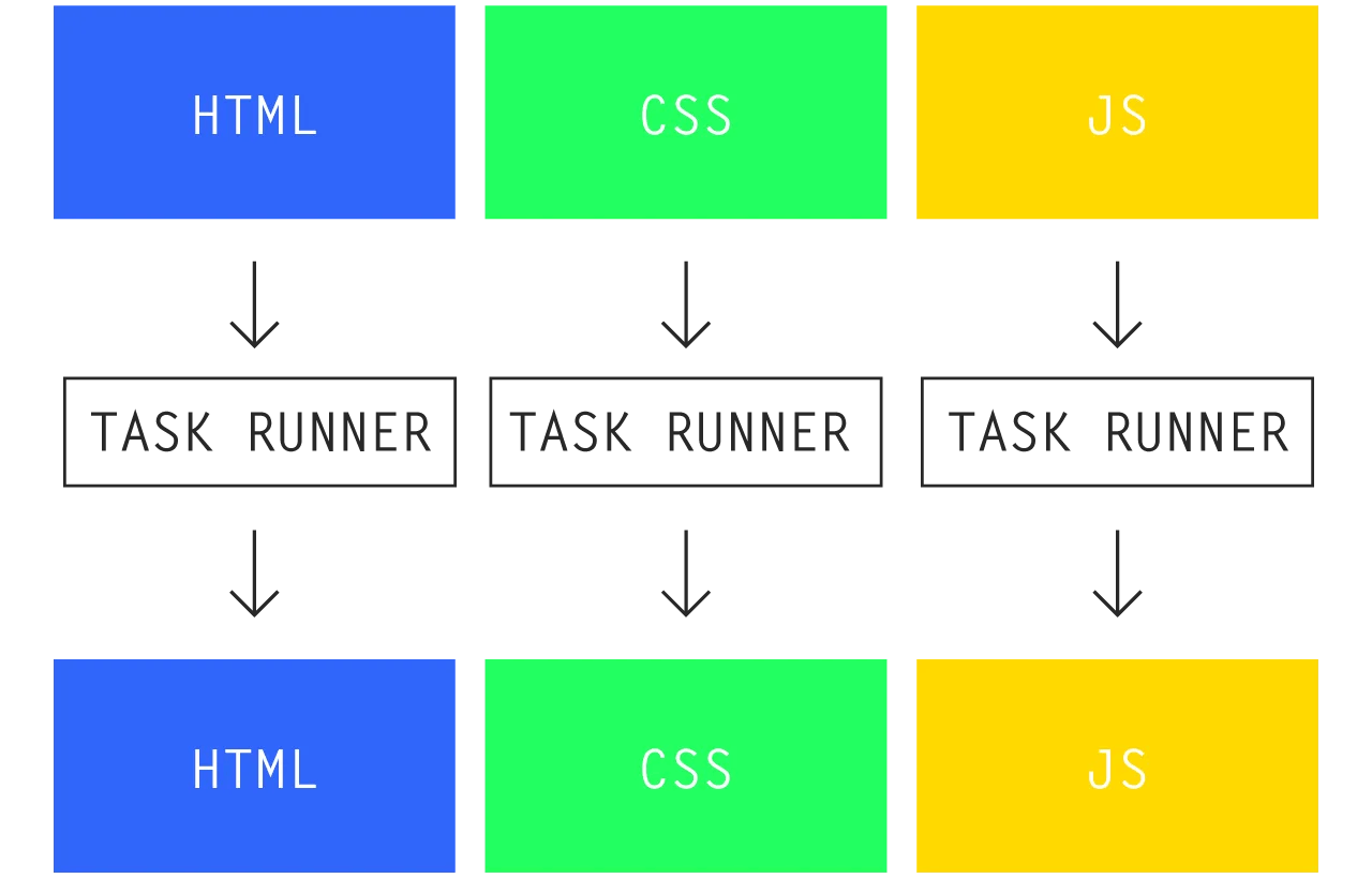 A task runner such as Gulp can handle many different preprocessers and transpilers, but in all cases, it will take a source input and crunch it into a compiled output. However, it does this on a case-by-case basis with no concern for the system at large. That is the burden of the developer: to pick up where the task runner left off and find the proper way for all these moving parts to mesh together in production.